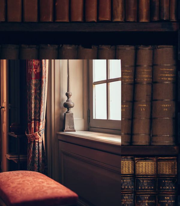 It is almost a musical experience, revelling in every detail... Our eyes are drawn by this fascinating picture, with every element in astonishing harmony with all the others. You could say that the objects are whispering, particularly in the library where the old books call to us. Our timid fingers caress a book’s spine. I open one, embark on a journey. Time stands still. You almost want to stay forever. Nestled in this country cocoon.